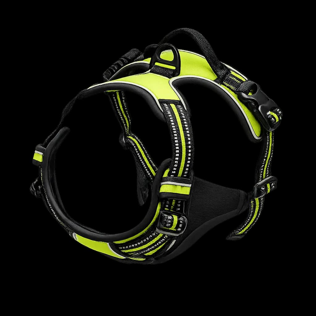 This harness is built for daily walks, better control, and a more comfortable fit than clipping a leash directly to a collar. The padded vest shape helps spread pressure across the chest, the top handle gives you quick control in busy spaces, and the four-point adjustment system helps you dial in the fit for growing dogs or thick-coated breeds.